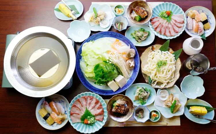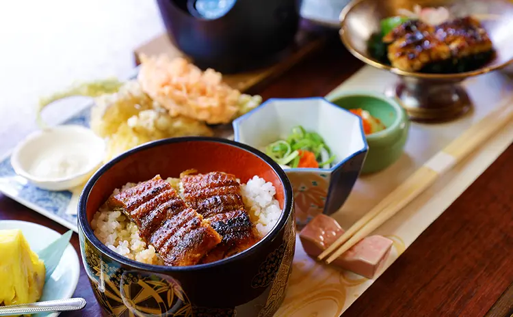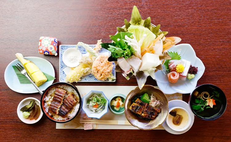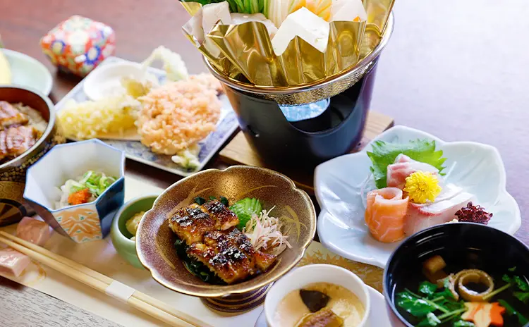 福を呼ぶ「ふぐ(真ふぐ)」と、古来から健康・良縁・金運など開運をもたらすとされる「うなぎ」を味わっていただける会席コースです。